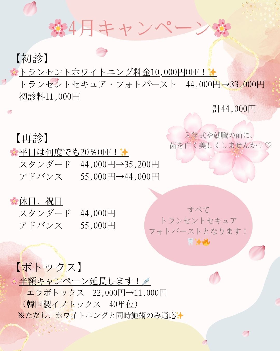 4月からのキャンペーンをお知らせします🌸